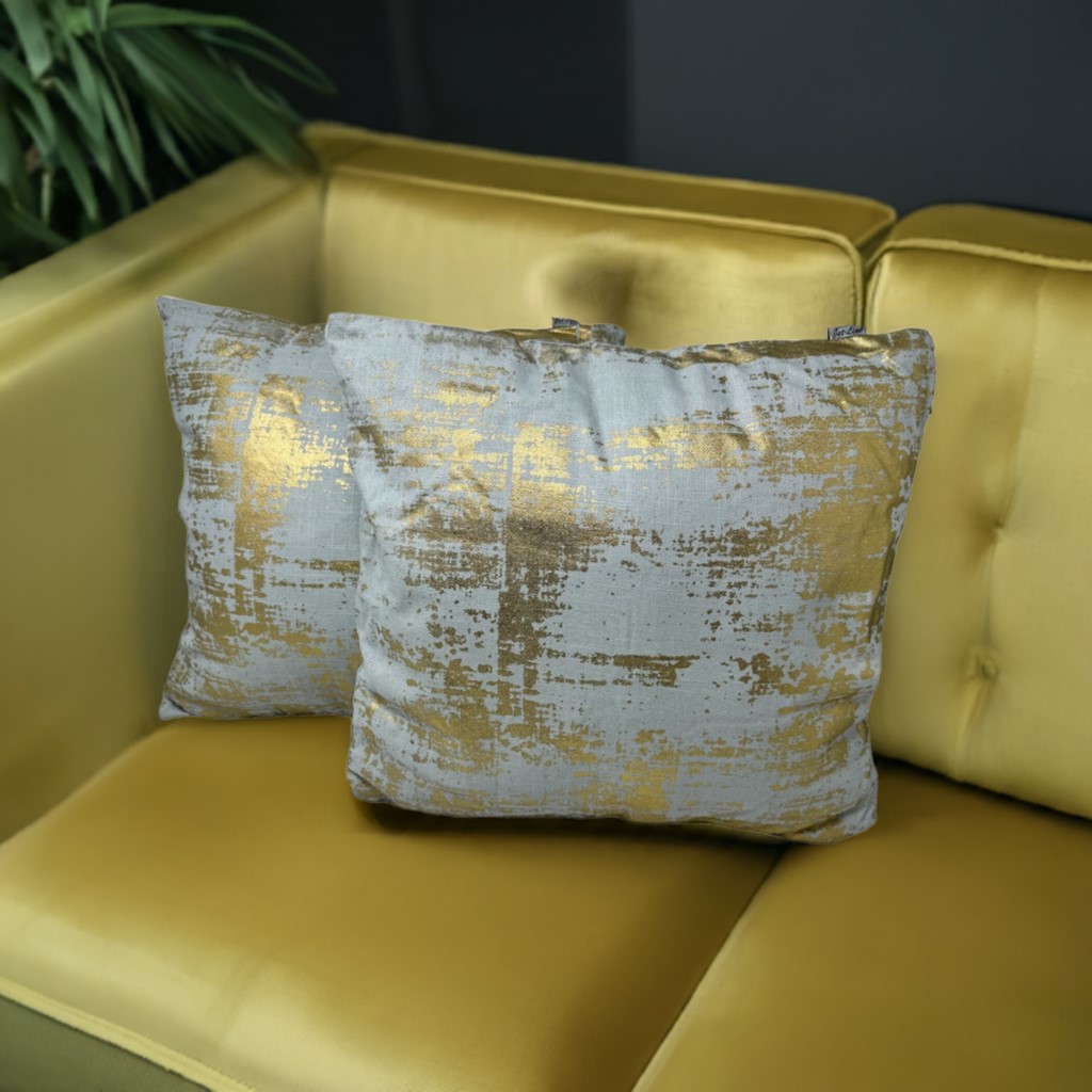 2-er Set Exklusives Indoor Sofakissen mit Foliendruck in Gold. inkl. Füllung
