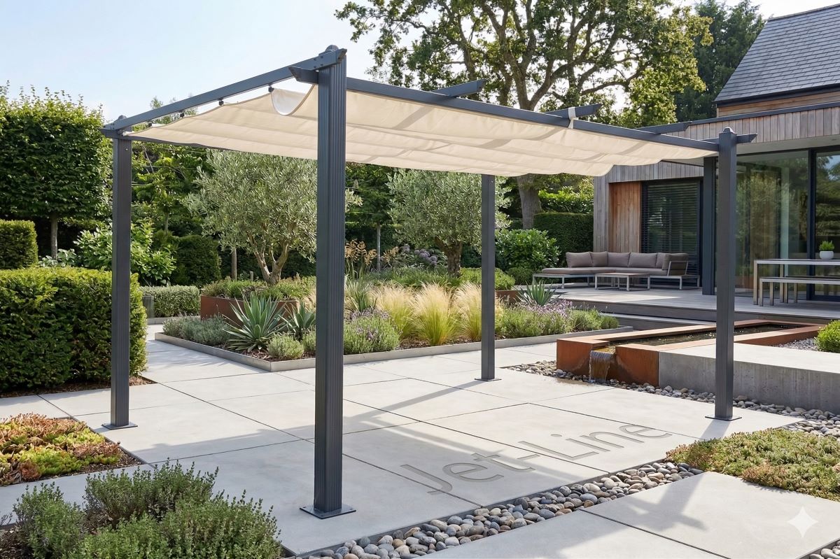 Pavillon Pergola Überdachung "Luxor" Alu anthrazit-beige Witterungs- und Korrosionsbeständig