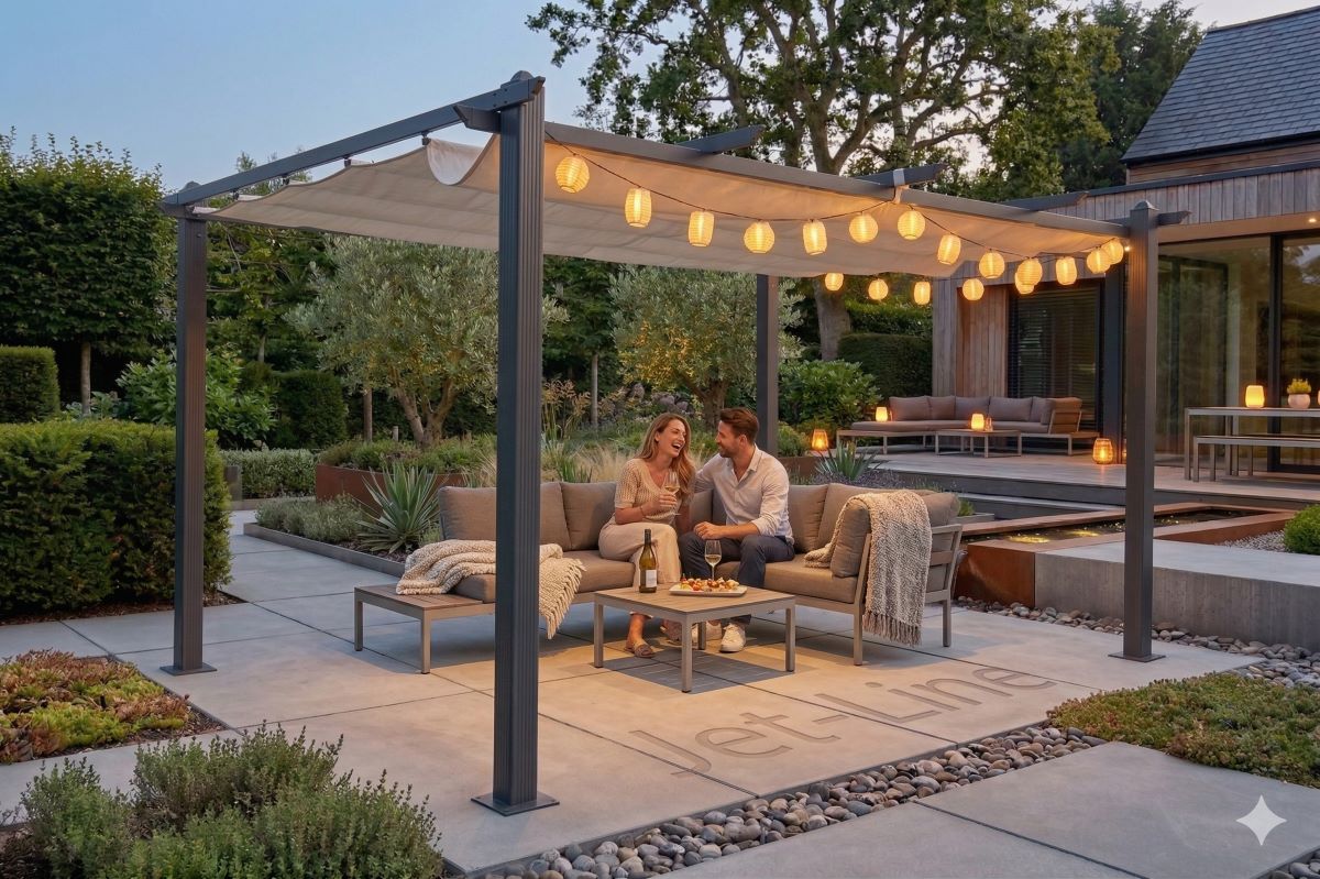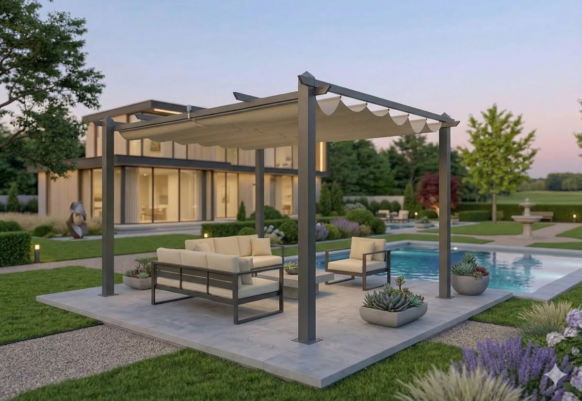 Pavillon Pergola Überdachung "Luxor" Alu anthrazit-beige Witterungs- und Korrosionsbeständig