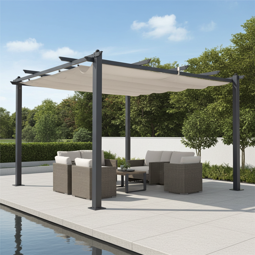 Pavillon Pergola Überdachung "Luxor" Alu anthrazit-beige